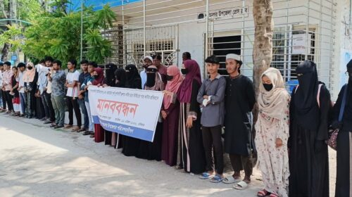 চাঁদাবাজী ও নির্মাণ শ্রমিকের উপর হামলার প্রতিবাদে রংপুরে মানববন্ধন ও প্রতিবাদ সমাবেশ অনুষ্ঠিত