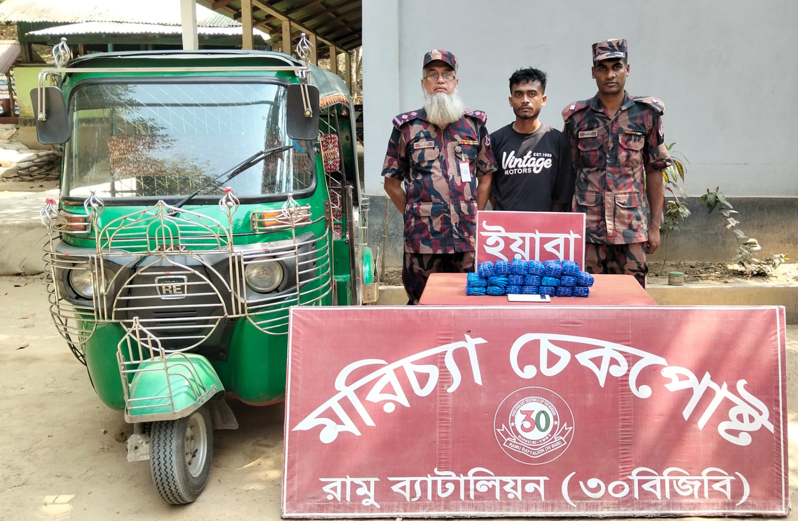 কক্সবাজারের রামুতে সিএনজিতে তল্লাশি চালিয়ে ৪০ হাজার পিস ইয়াবাসহ চালককে আটক করেছে বিজিবি