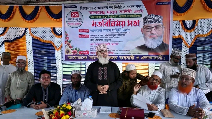 কামরুল আহসান সোহাগ, পিরোজপুর : পিরোজপুরের নাজিরপুর উপজেলার দেউলবাড়ী ইউনিয়নের বৈঠাকাঠা বাজার ব্যবসায়ীদের সঙ্গে পিরোজপুর-১ আসনের সংসদ সদস্য, আল্লামা সাঈদী ফাউন্ডেশনের ভাইস চেয়ারম্যান আলহাজ মাসুদ সাঈদী এমপির মতবিনিময় সভা অনুষ্ঠিত হয়েছে।