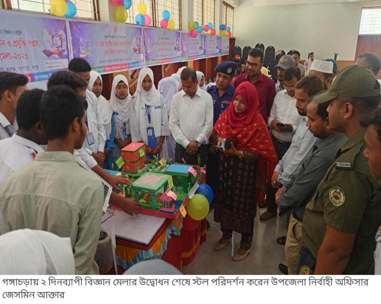 মোঃআখতারুজ্জামান তিতাস, গঙ্গাচড়া (রংপুর) প্রতিনিধি: উদ্ভাবননির্ভর বাংলাদেশ গঠনে বিজ্ঞান ও প্রযুক্তি এ প্রতিপাদ্যে ৪৭তম জাতীয় বিজ্ঞান ও প্রযুক্তি সপ্তাহে ও বিজ্ঞান মেলা গঙ্গাচড়ায় উদ্বোধন করা হয়েছে। দুই দিনব্যাপী মেলা এবং ১০ম বিজ্ঞান ও অলিম্পিয়াড এবং ১০ম বিজ্ঞান বিষয়ক কুইজ প্রতিযোগিতার উদ্বোধন করেন উপজেলা নির্বাহী অফিসার জেসমিন আক্তার। বিজ্ঞান ও প্রযুক্তি মন্ত্রণালয়ে পৃষ্ঠপোষকতায় এবং জাতীয় বিজ্ঞান ও প্রযুক্তি জাদুঘরের বাস্তবায়নে ও উপজেলা প্রশাসনের আয়োজনে রোববার সকালে উপজেলা অডিটরিয়াম কাম