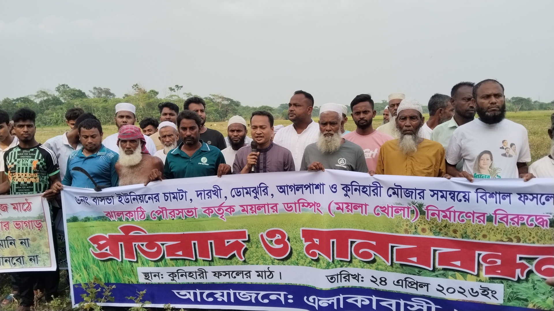 বক্তারা বলেন ৫ একর জমির ওপর ৬নং বাসন্ডা ইউনিয়নের চামটা, দারখী, ডোমঝুরি, আগলপাশা ও কুনিহারী মৌজার সমন্বয়ে বিশাল ফসলের মাঠে ঝালকাঠি পৌরসভা কর্তৃক ময়লার ডাম্পিং (ময়লা খোলা) নির্মাণের সিদ্ধান্ত নিয়েছে।